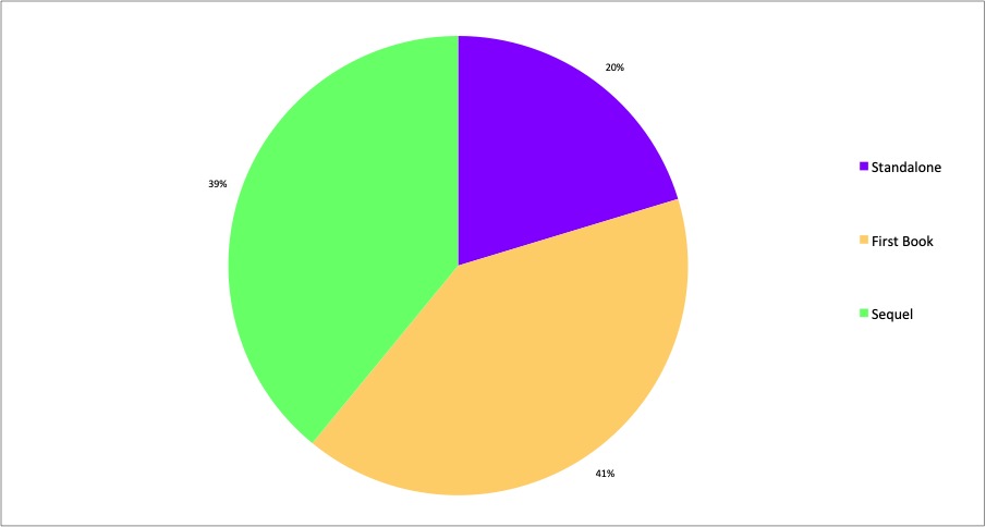 I read 26 standalones, 52 first books in a series and 50 series sequels.