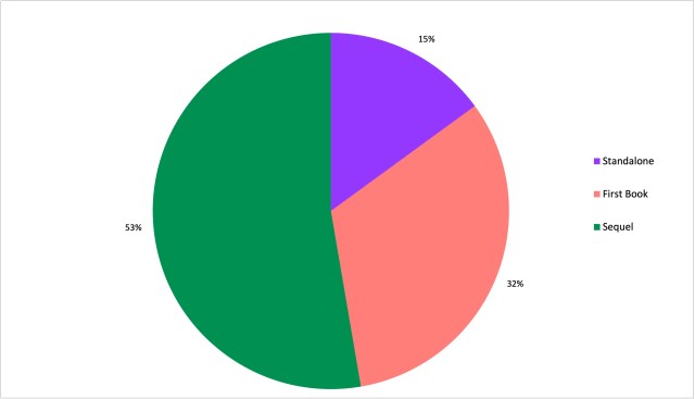 I read 25 standalone books, 54 first books in a series and 88 series sequels.