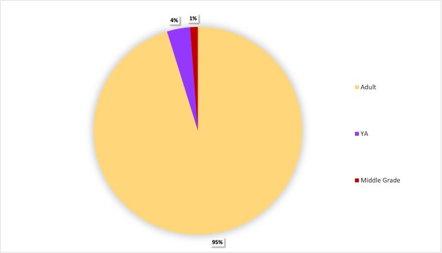 To breakdown the numbers; 159 of the books were intended for an Adult audience, 6 were YA and 2 where Middle Grade.