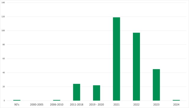 I read 46 2023 releases (17 of which was ARCs and one of those was a 2024 release), 97 books released in 2022, 119 books were released in 2021, 22 books were released between 2019 and 2020, 24 were released between 2011 and 2028, 1 book was released between 2006 and 2010 and 1 book was released in the 90s.