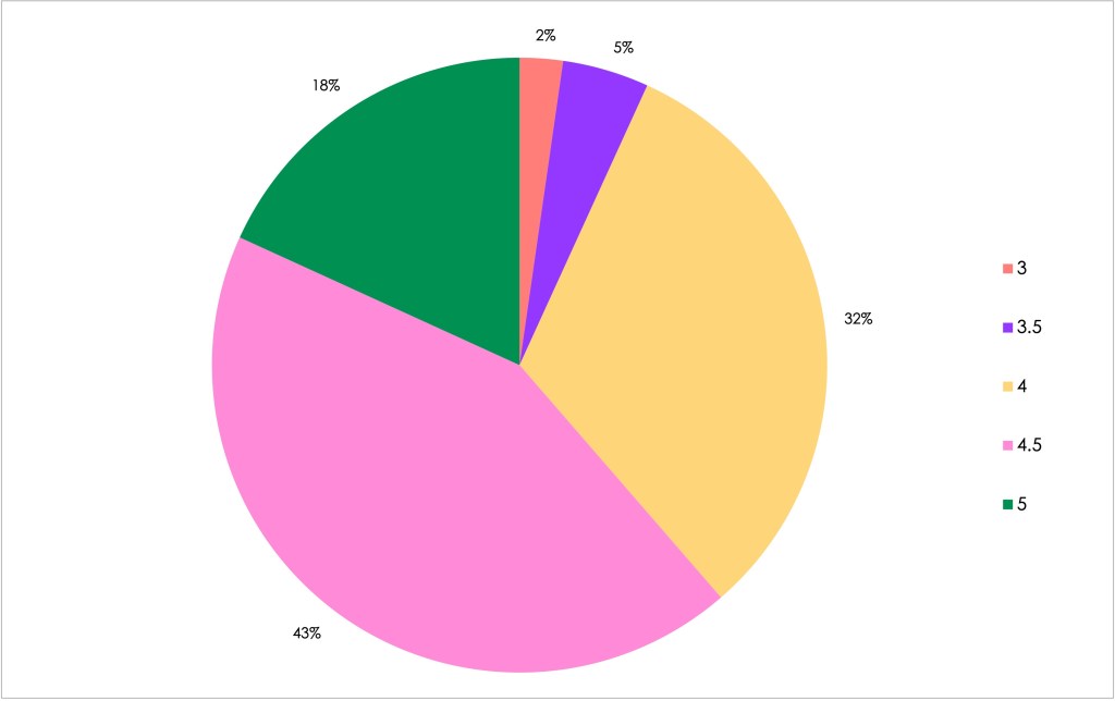This has been a fantastic start to the year. I’ve read slightly more books than last quarter. I am beyond thrilled that the lowest star rating I gave was 3 which is still a goof, fun read in my mind. I gave 8 books a 5 stars rating, 19 received 4.5 stars rating, 14 have received 4 stars, 2 have received 3.5 stars and 1 recieved 3 stars.